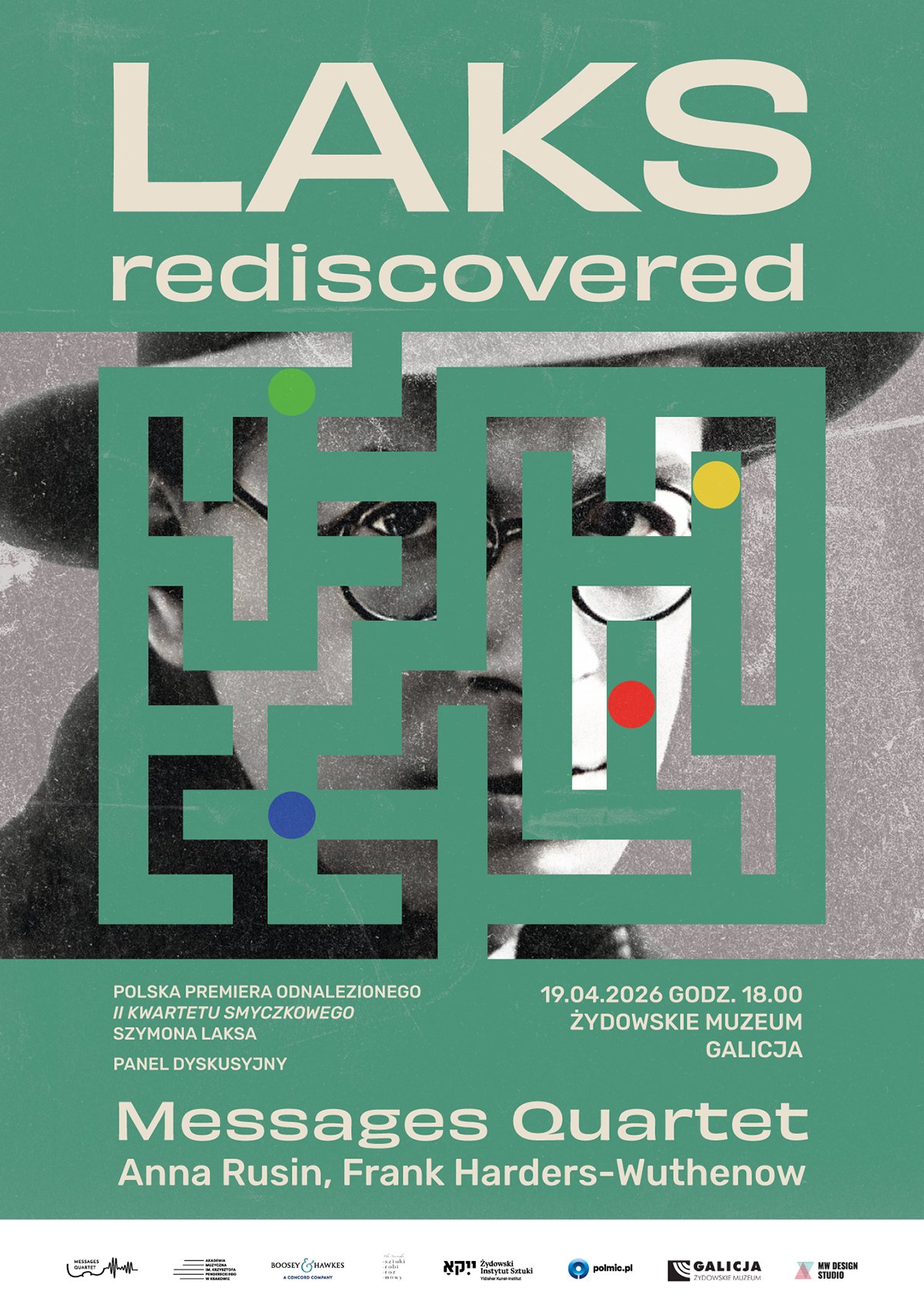 19 kwietnia 2026 o godz. 18:00 w Żydowskim Muzeum Galicja odbędzie się wydarzenie Laks Rediscovered, podczas którego publiczność usłyszy polską premierę odnalezionego II Kwartetu smyczkowego Szymona Laksa (1932). Utwór wykonywany był w latach 30. XX wieku, po czym zaginął i na blisko stulecie zniknął z życia muzycznego. Jego ponowne odkrycie pozwala dziś przywrócić ważny, nieobecny dotąd fragment twórczości kompozytora. Partytura uznawana przez niemal sto lat za zaginioną ponownie zabrzmi – i to w Krakowie.